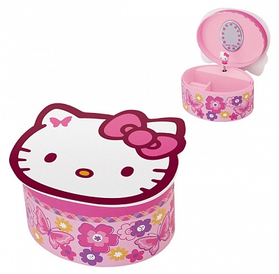 Шкатулка работает на механическом заводе. При открытии начинает играть, Kitty вращается.